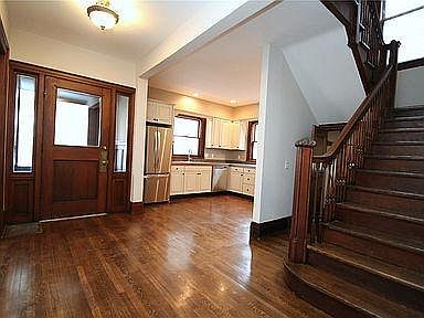 This apartment in historic home built in 1860 has been completely renovated for the comfort of carefree living. High ceilings, brand new custom kitchen, new bathrooms, hardwoods throughout. The first floor has a spacious kitchen, dining room and living room in addition to 1 full and 1 half bath. As you go upstairs there are two bedrooms including the master which has a soaking tub, standup shower and large walk in closet. The smaller bedroom upstairs has washer dryer hookups but can converted into a bedroom if desired. Large front porch for private access to this unit in addition to two garage ports. Plenty of storage space. Three units including this one in the building, occupied by professionals. Available as unfurnished, semi furnished or furnished. First month free. Owner pays for water, snow removal, and lawn mowing. Tenant pays for gas, electric, cable, and internet. Can be rented furnished $2200 a month, partially furnished or empty $2100. Corporate rental/1099 is OK. No smoking or drugs in premises. One year lease that can be extended if needed. Security deposit is $2400. Cats are allowed with fee/$25 a month per cat, maximum two cats allowed. Credit checked. 2Full, one half baths. Soaking tub. Walk in closet. Basement storage. Two car garage is available free for this apartment. Large private patio. Laundry hook ups or washer/dryer available in unit.