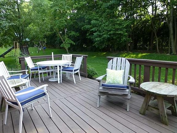 Immaculate Drees Westbrooke on wooded cul-de-sac lot. Beautiful landscaping & move in condition. 2 sty entry boasts hardwood, palladium window & turned staircase. Study offers french drs, abundant built-ins, 9'ceiling w/crown. Cathedral ceiling graces Formal LR & DR. DR has bay window & wainscotting. Hardwood flrs, breakfast bay & center island define the inviting kitchen, along w/crown moldings & beadboard. Tile mudroom has bench seating & cubbies for storage. Kitchen opens to lge Fam Rm offering gas FP, crown molding & walkout to expansive deck & woods. Vaulted master suite includes soaking tub+shower, dbl sinks, ceramic tile. 3 other generous size bedrms & full bath. Full unfin LL plumbed for bath, laundry, built-in storage. Radon mitigation system, sump pump +backup, Roof'09, ext paint'12, Other Updates: HWH, int/ext lighting, faucets, door hardware, paddle fans. palladium window (which is tinted), kitchen window. Neighborhood pool, play gym & sport court. Home Warranty