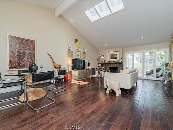 Single level 2 bedroom 2 bath Woodbridge charmer! Front patio ism manicured with soft scape. This home has rich, engineered wood floors, recessed lights, plantation shutters and scraped ceilings. Gourmet kitchen has rare kitchen Island with breakfast bar. Kitchen has granite counters, stainless steel dishwasher, gas range, microwave and refrigerator accented by sleek and modern cabinetry. The kitchen open up to living area. The living room has a refaced fireplace. All windows upgraded to vinyl dual pane. A spacious secondary suite is located right off the entry. Attached bedroom has been upgraded with granite counters & updated cabinets. Luxurious Primary Suite has vaulted ceilings and modern closet doors with plenty of built-ins. Primary Bathroom has been reconfigured to add more storage space along with vanity & shower over tub. Rear patio is perfect for summer BBQ's and entertaining! Award Winning Irvine Schools and Woodbridge Village Association facilities; lakes, pools, tennis and sport courts including pickle ball, fishing and walking trails. Close to 405 freeway, Irvine Spectrum, Irvine Valle Colle and HOAG Medical facilities.