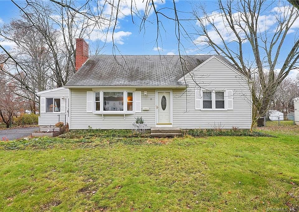 Wonderful Southern Enfield location. This 4 bedroom, 1.1 bathroom Cape offers easy maintenance free vinyl siding, thermo windows, sliders from the heated 4 season/family room that leads out to a 265sqft pressure treated deck overlooking park-like setting with pergola, fire pit, pear and apple trees. Updated/refreshed kitchen with cherry cabinets, tile flooring, new(er) appliances open to the dining area with large windows to let the sun shine in! First floor full bath updated with new tub & surround, pedestal sink, toliet, tile flooring and storage cabinet. Living room with fireplace*White woodwork*All interior doors replaced with white, raised panel doors*Hardwood thruoughout the first floor*Windows galore in the family room with vaulted ceiling and sky lights*Lower level family room for added living space*Updated oil tank and furnace*Newer driveway with parking for up to 6 cars. This home could accommodate those in need of one level living and the second floor bedrooms and half bath would make great accommodations for overnight guests. All nicely situated on .85 acre lot which is a rare find in Enfield! Easy to show and a pleasure to view!!