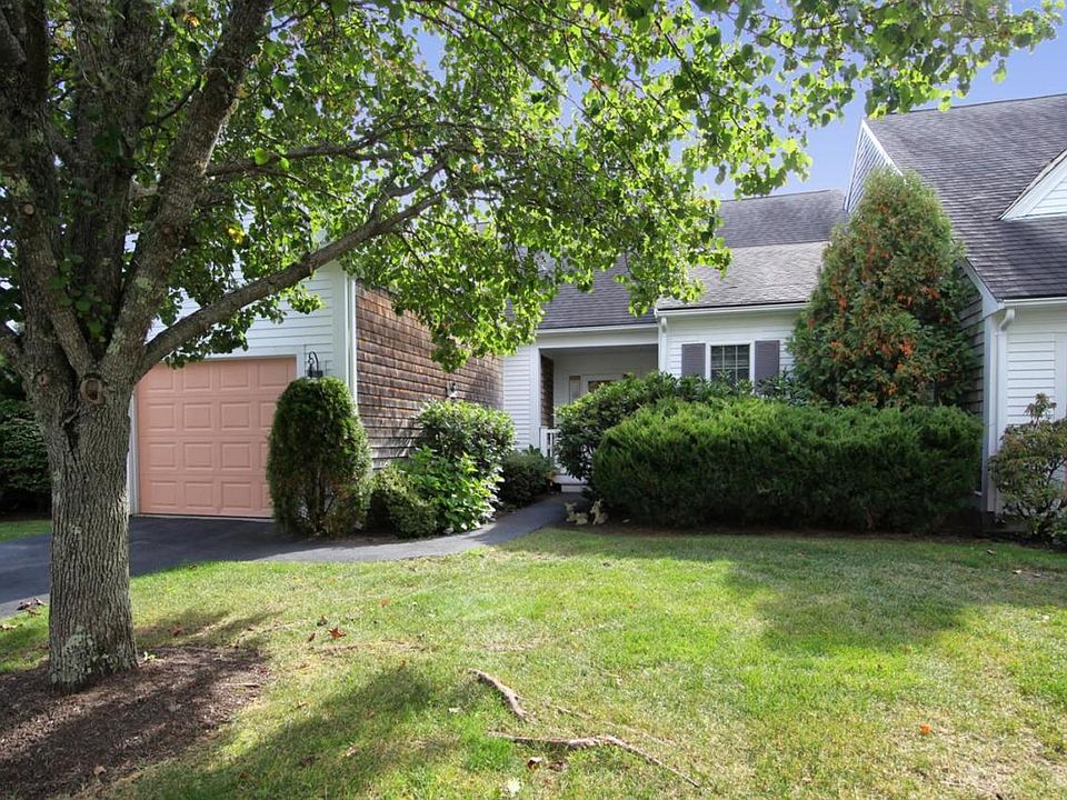 Rare offering for a Ranch Style Condominium at Stratford Pond's in Mashpee. Beautiful landscaped complex just minutes away to all of Mashpee amenities, ie, Mashpee Commons for shopping and restaurants, beaches, salt and fresh water. One floor living with a one car garage, gas heat/central air. Two bedrooms, cathedral ceilings, 2 full baths, eat in kitchen, light bright and ready for your paint colors and decorating. Seller installed a beautiful composite deck off back with two sliders from living room and awning. Very large full basement, a great value and move in ready. Buyers are encouraged to verify all measurements for accuracy.