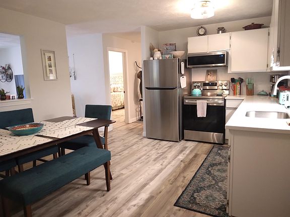This tastefully renovated and spacious 1 bedroom, 1 bath condominium offers the perfect blend of comfort and convenience, located just off Route 3, Exit 1, providing ease of access for commuting and offering a plethora of shopping, dining and entertainment options within just a few minutes drive. This stylish unit features a large sized bedroom to accommodate king sized bed and furniture, convenient walk-in closet, large eat in kitchen with open concept, direct view into a spacious living room and including direct access to your own private second story rear deck overlooking a wooded back yard. Featured upgrades include but are not limited to: luxury vinyl plank flooring throughout; upgraded interior doors; new paint throughout; new stone kitchen counter tops and back splash; new appliances and lighting fixtures; bathroom vanity with marble top and stepless dimming LED medicine cabinet offering fully adjustable brightness and color temperature settings; and new plumbing. This unit is absolutely move in ready. Heat and hot water is included in the low condo fees and residents also enjoy community access to the indoor pool and tennis court on site. Coin op laundry and private storage conveniently located on the ground floor. Subject to seller’s closing on new home currently under contract. Showings begin with open house scheduled for Saturday, April 19th 11:00 A.M. to 1:00 P.M. An offer deadline has been set for 4:00 P.M. Monday, April 21.