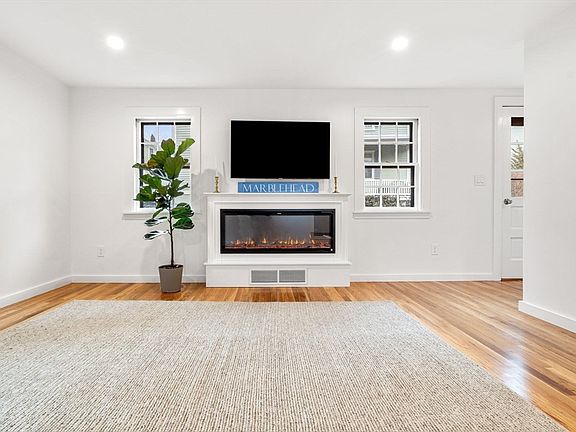 Introducing 10-12 Summer Street, one of the loveliest streets in historic downtown Marblehead. One of two townhouse style residence . The living room sets the stage with an electric fireplace, and a flat screen tv. This beautifully renovated interior includes a custom kitchen/dining area with shaker style cabinets, quartz counters and stainless steel appliances. There is also a full bath on the first floor. The second floor hosts the primary bedroom, second bedroom, a hallway bath and laundry area with stackable washer/dryer. The walk-out lower level offers a spacious family room or office, and storage area. Hardwood flooring, all new gas hot air heat, and central A/C unit. The exterior has been recently stripped and stained, new gutters and downspouts. All new storm windows and doors. Outside, an exclusive use porch and fence in yard, an inviting space for residence. Each unit enjoys the benefit of one off street parking spot.