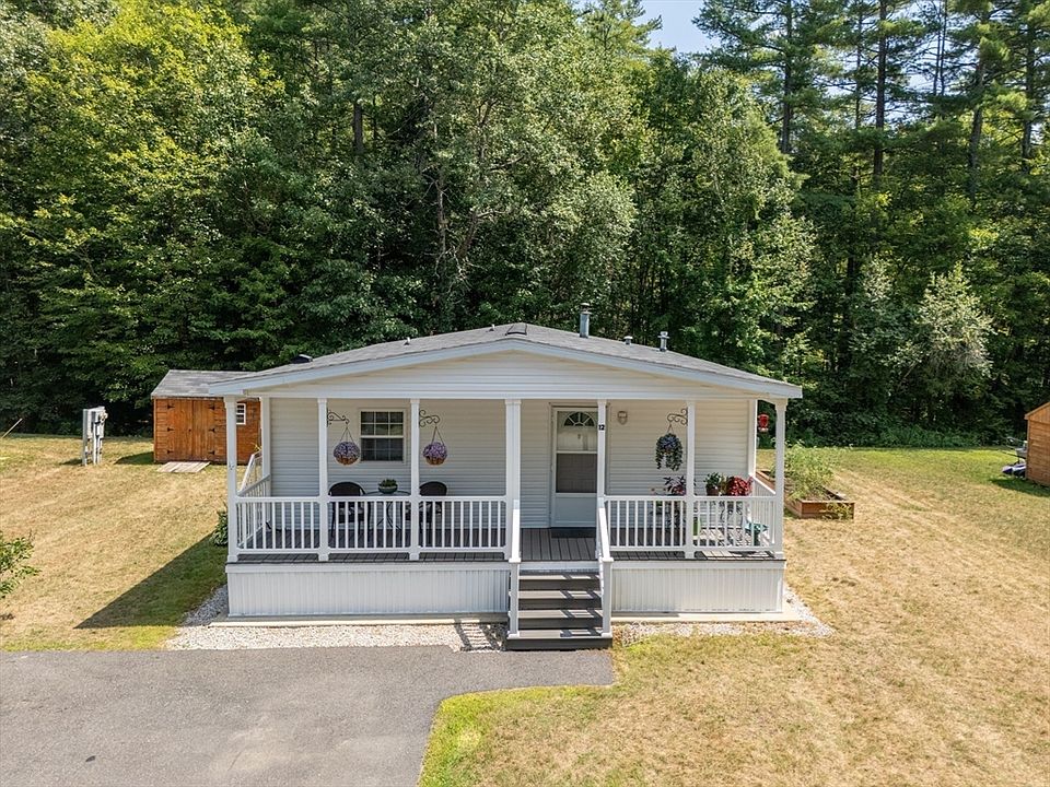 Best seat in the house!  Look no further than this young culdesac Tamarack Place for a 5 star location in Whispering Pines Mobile Home Park. Whether it's the covered front porch or raised garden bed that keeps you oustide or the spacious living area with open floor plan to kitchen that keeps you inside, #12 Tamarack Place might be your perfect next home. Two bedrooms include a primary suite with it's own full bathroom and a nice large closet plus a spacious second bedroom. This clean home has been loveingly cared for and it shows!  The spacious laundry room and upgraded common area rug will add to your daily comforts.