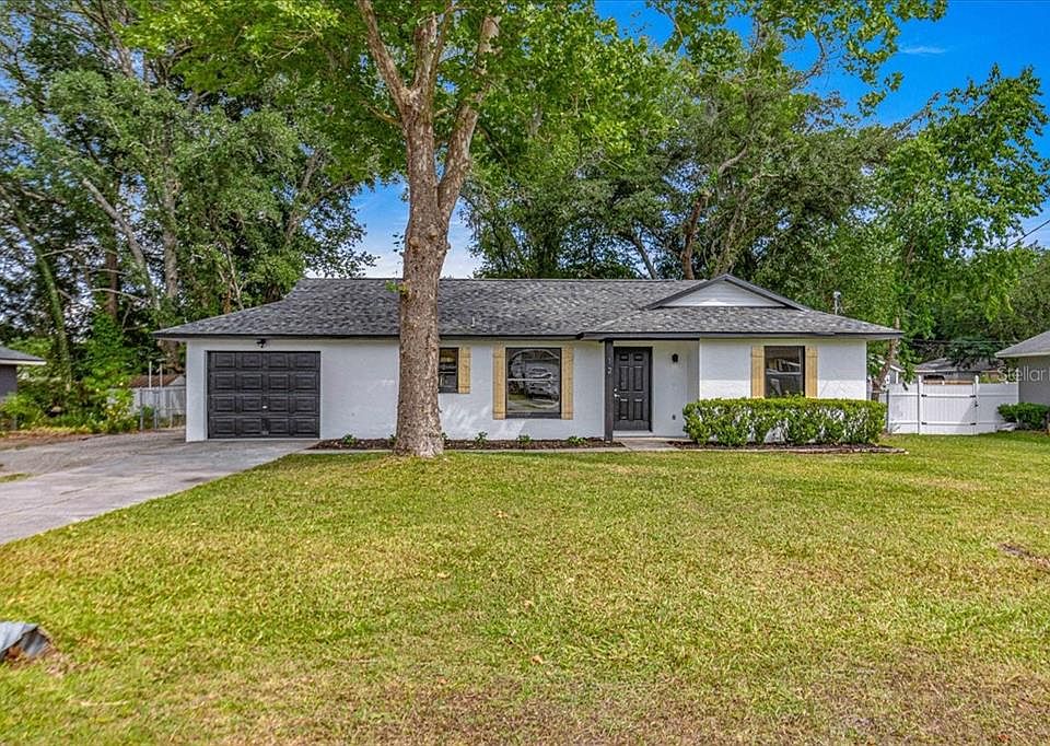 One or more photo(s) has been virtually staged. SELLER OFFERING $5,000 TOWARDS BUYERS CLOSING COSTS/BUYDOWN WITH ASKING PRICE OFFER. Welcome to your dream home! This stunning 3 bedroom, 2 bath sits on .23 acres, offering you the perfect blend of comfort, functionality, and style. As you step onto the property, you'll be greeted by meticulous landscaping that adds a touch of natural beauty to the surroundings, including mature trees that provide shade and tranquility. The freshly installed LVP flooring invites you into a space where every detail has been carefully considered. The heart of this home is the kitchen, where sleek custom concrete countertops complement the newly installed wood cabinets, creating a contemporary yet cozy atmosphere. State-of-the-art new appliances, including a washer and dryer, make everyday tasks a breeze. The spacious living areas boast new fixtures, trim & flooring each room enhanced with new ceiling fans and lighting, ensuring optimal comfort and ambiance. The master bedroom offers a serene retreat with its own ensuite bath, while two additional bedrooms & one other full bathroom provide ample space for family or guests. But this property extends beyond the walls of the house. A 24'x16' workshop/garage with a roll up garage door awaits those with a passion for tinkering or crafting, wired to accommodate a welder, A/C, and RV. This versatile space offers endless possibilities for creative pursuits. With additional parking on site, accommodating guests or storing recreational vehicles is effortless. Plus, the fenced backyard, adorned with mature trees, provides a safe haven for your little ones or pets to play freely. Rest easy knowing that major updates have been taken care of, including a new water heater, fixtures, appliances, flooring, landscaping. A newer well pump, pressure tank, pressure switch & control box, as well as a completely new HVAC system in 2018 and a new roof in 2019. The septic system was recently pumped and inspected in 2024. The entire home was updated in 2024, ensuring modern comfort and convenience throughout. Built with block construction and stucco, this home combines durability with timeless elegance. Don't miss your chance to make this your forever home – schedule a viewing today and let your dreams come true!