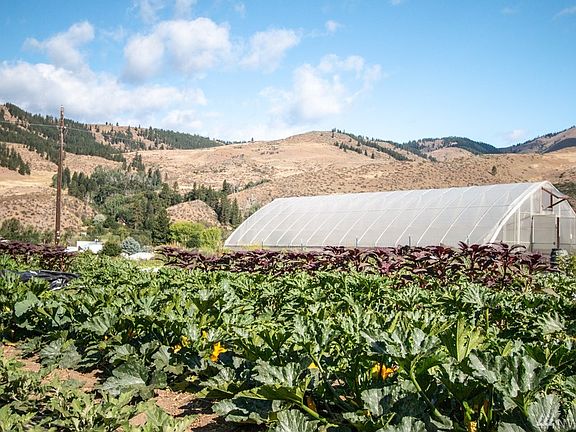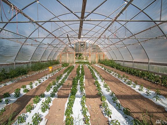 Certified organic farm with multiple dwellings. Two 1400+ sf greenhouses, germination room, cool and cold rooms, poultry house and more. Updated 1977 MH on top of daylight basement produce processing and storage area. Separate cozy cottage and fun converted-bus tiny home, all on lush parklike grounds. 30 gpm well, 22.5 gpm irrigation right, 6 underground frost-frees, drip irrigation system. Can also be purchased with farm equipment and CSA/market business.