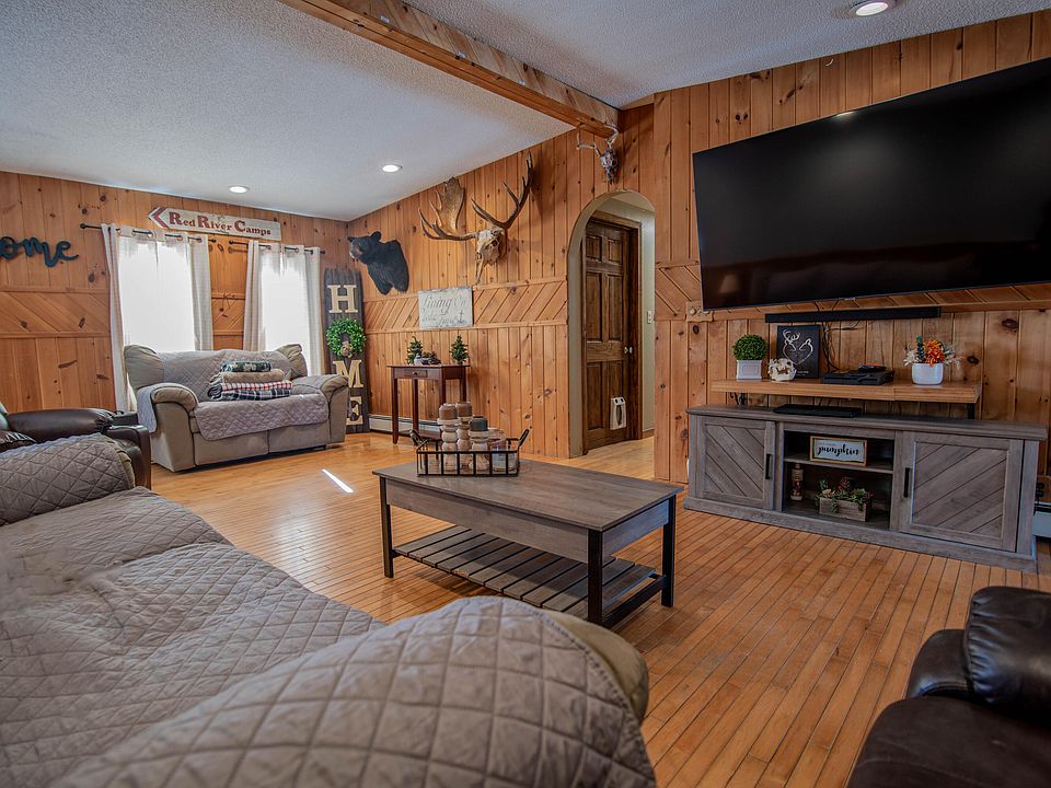 Hardwood floors, knotty pine, and rounded archways add lots of character.  Around the corner is the kitchen, which is well appointed and has updates such as newer cabinets and a tile backsplash.  The main features include two bedrooms, a full bathroom, a dedicated laundry room, a storage room with a pantry, an office, and two more unheated rooms that can be used for storage or summertime living quarters.  The large primary bedroom also enjoys a vaulted ceiling, and offers a wall to wall closet for all of your clothes.  This room sits at the far end of the home, which means the kitchen and living room noise will not be a bother as you rest.  The partial basement is great for further storage and ensures the home's systems are easily accessible.  Rounding out this great property is the large backyard. Enjoy bonfires, have space for animals, you name it--You'll always find space when you need it.  This well put together home is turn key and ready for you to make it yours. Call today for more information!
