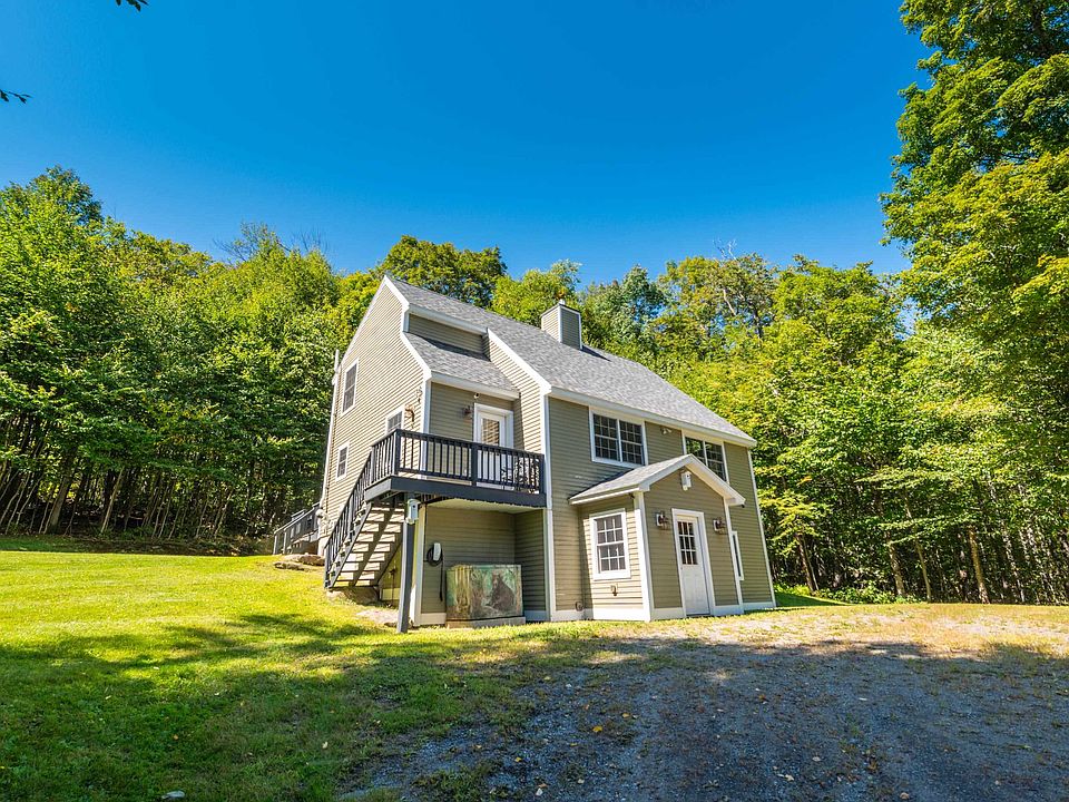 Beautiful 2006 chalet in the Chimney Hill community just a short drive from the Mount Snow Ski Resort and village Wilmington. This meticulous turn key home has been completely renovated and upgraded, and sits on a on a private lot in the Chimney Hill community on a quiet side road with access to snowmobile trails and winter views. Inside is a gorgeous great room space with vaulted ceilings and exposed natural woodwork, great natural light thanks to large windows but with a Vermonty rustic feel, wood floors throughout, a gas fireplace with stone hearth, updated kitchen with custom cabinets, stainless appliances, and quartz counters, dining area, a main floor primary suite with full bath, a main floor office, an upstairs guest room, a bunk room, as well as a full bath, a fully finished walkout lower level family room with gas stove, billiard area, custom ski room with cubbies and coat racks, full updated bath, entry foyer, as well as a main floor large mudroom. There is also a spacious double deck for entertaining, great lawn space, and large drive for ample parking. This includes the amazing Chimney Hill amenities of indoor and outdoor pools, clubhouse, theater, gym, hot tub, basketball court, tennis courts, winter ice skating, and a la carte services like plowing and trash, to afford yourself plenty of downtime, not upkeep.