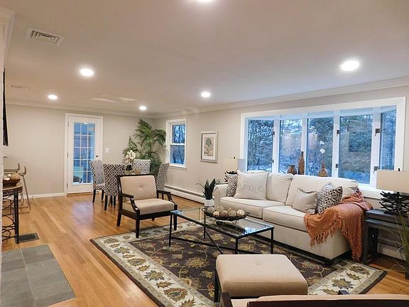 Welcome to a beautifully remodeled home that feels like new and modernized throughout. Open plan thatâs bright & sunny with extra nice finishes. Brand new kitchen w skylight, granite counters, marble back-splash, white cabinets and white Samsung appliances. Includes peninsula to LR. This bright airy space incl new 4-season glass room overlooking lg manicured back yard & has an ext grade 15 panel French Door to LR-new owners can heat or not. Gleaming hardwoods throughout main level with 3 BR's up including master w updated half bath. Fabulous finished walk-out basement is bright w over-sized windows, bedroom and full bath, new floor. A large family room with wood stove completes additional finished 790 SF on lower level. Use for family room, teens or in-law apt. Newer boiler and central air. Updated windows and new full-length storm door w pull down screen shade. Ponkapoag close to highways and train. OH Sat 11-1 is for back-up offers only - property has accepted offer with Ctgy's
