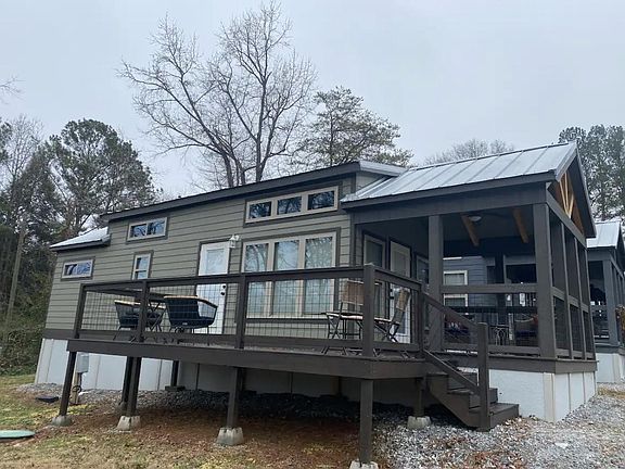 Fully furnished tiny home for rent, weekly or monthly available. On the shores of Lake Cunningham with over a mile of walking trails along the lake. Fully stocked kitchen, washer/dryer, living room area, front and side deck, master on the main with a queen bed, loft with an additional queen bed. Nice community with 12 tiny homes total and everyone is very friendly.