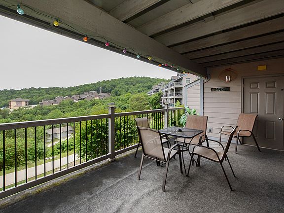 Completely furnished - turn key - ready for nightly rental!! Have you been thinking about purchasing a 2nd home/vacation home in Branson? Check this one out! Great Table Rock lake views from your covered deck! Use it when you wont and then put it on the on site nightly rental program to pay for itself! Freestanding electric fireplace included. End unit & this building has a elevator. (Only a couple do) Pool, Clubhouse & this unit is closest to the Lake access with wooded walking trail to shoreline! Park your boat trailer for free! Dream no more...this can be your new vacation home or investment property, Just down the road from Silver Dollar City & all that Branson has to offer! Exercise pool and hot tub!