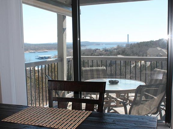 Not all Treehouse condos are the same.1204 is a true walk-in level. Owner also has a garage space for 15,000.00 more in building 14. Owners have updated and is currently income producing. The updated kitchen has newer counters, cabinets, and flooring. Large new windows and glass door looks out to an expansive view of Table Rock Lake and all furnishings are included in the price. The fully equipped kitchen includes everything down to the silverware. King size bed in the master and queen size in the guest. Full size washer and dryer are included. Heat/air is only 4 years old, water heater new 3 years ago. Reserve the new community room for your family events, enjoy the outdoor pool or the indoor endless pool and hot tub.