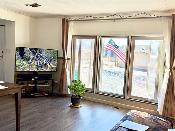 Explore this unrestricted country property! Private setting with ample space for 4-H animals and pets, this private retreat has seen consistent improvements, including nine new double-pane windows. The water rights are amazing with 3 ac ft water rights for outside use for garden, trees and animals! Kitchen has a brand new stainless steel refrigerator. The warm and efficient pellet stove heats the entire living area, making it cozy year-round; great supplemental heat to the forced-air gas furnace. An old adobe building serves as a stall and tack storage.