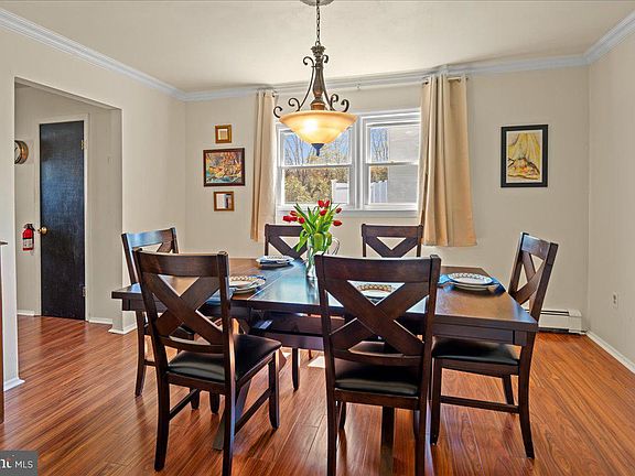Welcome to 12 Tyndale Road, a beautifully maintained ranch-style home in the heart of Hamilton. This charming home offers a bright and inviting living room with hardwood floors and a large picture window that fills the space with natural light. The dining room is perfect for family dinners and gatherings, featuring hardwood floors, a lovely chandelier, and crown molding for a touch of elegance. The kitchen is equipped with light cherry cabinetry, granite countertops, and a stainless-steel stove. The updated engineered wood flooring, stainless steel sink, ceiling fan, and pantry make this kitchen as functional as it is welcoming. The master bedroom is a peaceful retreat, filled with plenty of natural light. The master bathroom, renovated in 2022, includes a new sink, a stall shower, easy-to-maintain plank flooring, and self-closing cabinets for added convenience. Two additional bedrooms offer neutral carpeting and ample closet space. The full bathroom showcases retro-tiled flooring, a vanity with Corian countertops, and a linen closet for extra storage. The laundry room is equipped with a newer washer and dryer, plus shelving for all your storage needs. The two-car garage offers additional space, and baseboard heating keeps the home comfortable throughout. Recent updates include a new roof with a 50-year warranty, newer windows in the front bedrooms, and a high-efficiency HVAC system and water heater (both replaced in 2022), with a 10-year manufacturer's warranty from Weil McLain. The home also features central air conditioning (installed in 2021), along with a whole-house fan to help keep the home cool and comfortable during the warmer months. This lovely home offers a perfect blend of comfort, functionality, and thoughtful updates, ready for you to move in and make it your own.