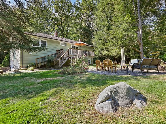Welcome to this beautifully maintained raised ranch on 2.29 acres. The main level open-concept floor plan connects the living room, dining area, and kitchen. The main floor features three bedrooms and a full bathroom on the main floor, offering a perfect family living space. The finished lower level significantly expands the home's utility, featuring a cozy family room with a fireplace and convenient walkout access to the garage and the outdoors. This versatile lower level provides the ideal space for a home office, a private guest suite, a dedicated play area, or gym. Step outside to the spacious deck, perfect for outdoor entertaining, grilling, and enjoying the serene backyard. The large, level backyard offers plentiful space for gardening, recreation, and outdoor gatherings. The 80 acres of Aspetuck Land Trust serves as your extended backyard creating perfect privacy.