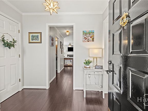 Amazing end unit townhome located in the serene and beautiful Vernon River Plantation. You will LOVE the hardwood floors throughout, updated lighting, and plentiful storage space in this 2 bedroom 2.5 bath townhome. Downstairs you will find a welcoming entryway that leads into the updated kitchen with all stainless-steel appliances, granite countertops, and an eat-in kitchen area. The kitchen opens into a beautiful and bright living space with ample natural light, built-in bar, and fireplace, in addition to the laundry room and 1/2 bath. Upstairs you will find TWO MASTER BEDROOMS, both with custom walk-in closets. The pull-down attic is fully floored for extra storage. Back downstairs you will find large sliding glass doors open to a large, covered porch with pavers and celling fans which flow into your very own fenced-in courtyard. HOA fees include a community pool, tennis courts, and landscaping. Within 10 miles of all of Savannah area hospitals and a short distance to the newly renovated Coffee Bluff Marina (which has a huge porch and sitting area for the perfect place to enjoy a beautiful sunset on the Vernon River). No flood insurance required!