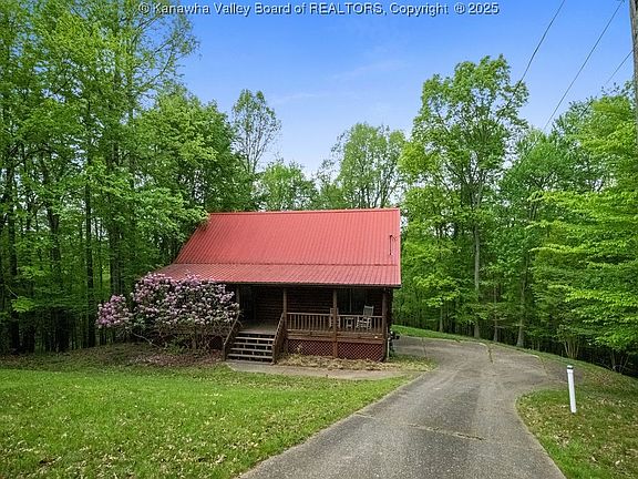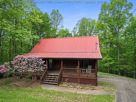 "Almost Heaven" perfectly captures the essence of this charming log home, privately tucked away atop 5.68 wooded acres. Surrounded by serene mountain views and natural beauty, this peaceful retreat offers an open floor plan with 3 bedrooms, 2 full bathrooms, and gleaming hardwood floors throughout. The den off the dining room and large deck are ideal for enjoying the breathtaking scenery in every season.