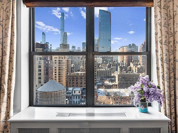 This gracious & spacious three bedroom apartment- with fantastic city views and TONS of natural light- is just one building in from Central Park. Stunning & dramatic, open long-range views to downtown from its southern-facing windows, the charming & classic living room gets an abundance of natural light all day long. The well-appointed and large kitchen, with breakfast bar/counter seating, has high-end stainless steel appliances and a large pantry. The southern-facing, sun-drenched, primary bedroom enjoys a windowed ensuite bath and walk-in closet. The second bedroom is oversized, has 2 large closets, and features an ensuite bath. The third bedroom is also quite spacious, easily accommodating a king sized bed. Absolutely gorgeous herringbone hardwood floors throughout the apartment. In-unit washer/dryers permitted with board approval. Through-wall air conditioning in the living room and 3rd bedroom.