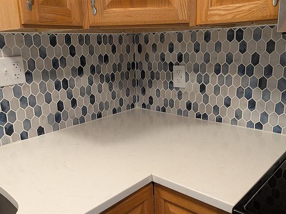 Quartz countertopsPrivacy fenced backyardSteel storage buildingImpact windowsStainless farm sinkBeautiful new backsplashNew bottom cabinets