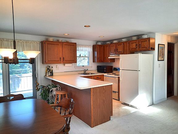 Welcome to 12 West Farm Road, a delightful classic cape nestled among beautiful mature evergreens in the Coffins Field neighborhood of West Tisbury. This well-kept home features 3 bedrooms and 2 bathrooms, offering 1,389 square feet of cozy and inviting living space. Skylighted ceilings and an open first-floor living/cooking/dining area combination provide a spacious feeling for everyday relaxation or special occasion entertaining. An elevated rear deck off the dining area allows for nearby grilling while enjoying the outdoor greenery, blue skies, and sunshine. The main level includes two conveniently located bedrooms for easy accessibility. Upstairs, you'll find a spacious loft area and an excellent primary bedroom, offering a serene retreat. A full unfinished walkout basement is ready for your creative ideas. The property sits on a gently sloping and generous 0.81-acre lot, providing a park-like canvas for your personal landscaping touches Centrally located in the Coffins Field neighborhood, 12 West Farm Road combines nearby island convenience with the potential to become your perfect retreat. Explore the possibilities that await in this charming West Tisbury home which is now available for the first time in 35 years. (Property is being sold furnished and as is).