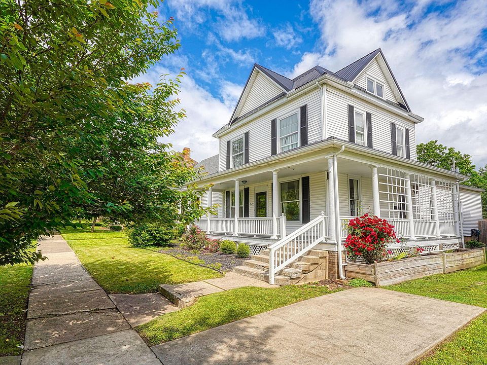 Welcome home to this beautiful 3 bed/2 bath home where you will be greeted by the expansive covered porch that is perfect for relaxing on a breezy summer afternoon. The backyard is completely fenced-in and has off street parking. You will find a covered porch and a large storage building off the porch. The home has been recently renovated with updated bathrooms, carpeting, roof, hot water tank and more. All appliances, including the w/d convey.