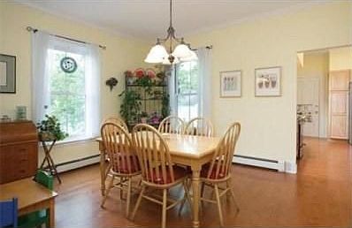 One of three owner occupied units in an 1872 Mansard Victorian home, this 2 bedroom, 1.5 bath condo offers 1,479 sq. ft. of living space on two levels. The first level boasts a 2008 eat-in-kitchen, dining room, living room and half bath. The second floor has two bedrooms and one over-sized full bath with laundry. Recent updates include both baths, wood floors on the first level and a 2011 heating system. This property is located close to restaurants, shops, public transport and Mass Pike.