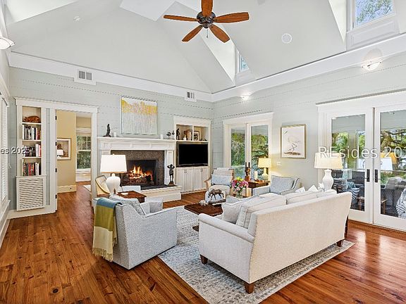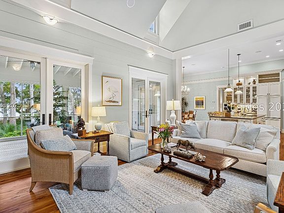 Designed by renowned architect Thomas Hyatt, this beautifully crafted four-bedroom, four-bath custom home offers a seamless blend of refined design and Lowcountry charm. Resting on .84 acres of beautiful marsh front, the 2,969 sq. ft. residence captures sweeping views of Spring Island's pristine saltwater fishery from the back, while the front overlooks the community's equestrian pasture, the perfect balance of natural beauty and timeless tranquility. Step inside and you're greeted by vaulted ceilings and sunlit spaces that frame the stunning views. Thoughtful craftsmanship and elegant details create a warm, welcoming atmosphere throughout, ideal for both relaxed living and gracious entertaining. Guests will feel right at home in the charming cottage above the garage, complete with a private ensuite, perfect for family and friends. Located in the heart of Spring Island, this exceptional property is just a short stroll from the dining club, marina, fitness center, and racquet facilities. Every element of this home celebrates the best of island living-where architecture, nature, and community come beautifully together.