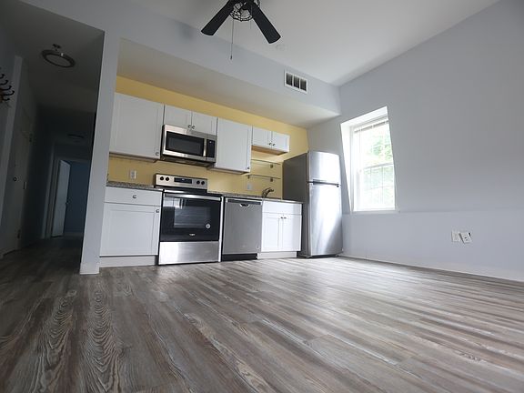Freshly renovated 2 bedroom apartment with 1.5 Bath. Beautiful new floors, stainless appliances, high ceilings. This apartment is on the top floor facing away from Natick downtown. Even though it is only a 30 second walk from the Natick train station and downtown area, the apartment is quiet with a nice breeze. Central Air. Laundry room with several washers/dryers is located on the 2nd floor of building. Parking space included. Non Smoking Pets allowed with prior approval from Landlord. Additional Pet fee may be required. This is at the sole discretion of Landlord.