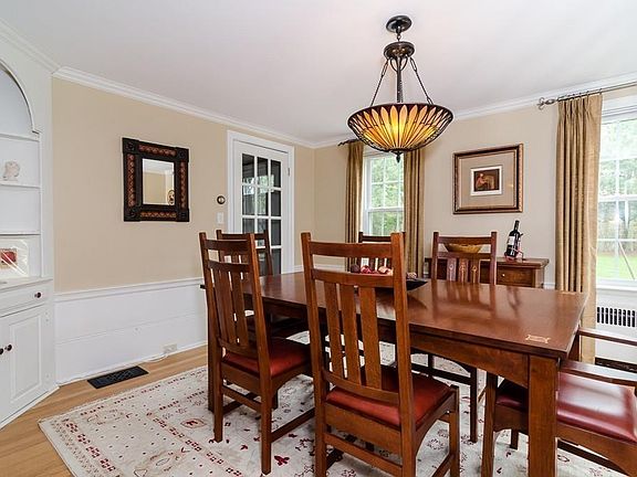 This classic center-entrance colonial on idyllic grounds is just a short walk to the town center! The kitchen has stainless appliances, including a new refrigerator and double ovens. An inviting, large family room boasts a wood-beamed cathedral ceiling and handsome stone fireplace. The comfortable, open floorplan features windows galore, charming details, and built-ins in the living and dining rooms. The sunroom--facing conservation land--can also double as an office or playroom. The second story has an ensuite master with ample closets and two additional bedrooms. The lower level has lots of storage and a separate spacious recreational area. One of the garage bays is newly converted, with amazing built-ins, flooring, and climate control for use as a studio/workshop/gym. A gorgeous, cultivated yard of mature trees and perennials surround a vegetable garden, potting shed, and heated saltwater pool with removable childproof fencing. Your family will love this home!