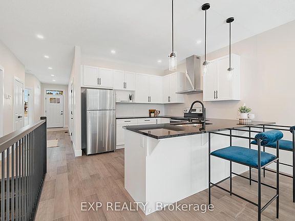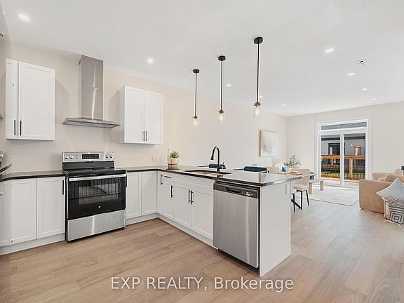 Welcome to 12 Washington St, Unit 103a modern bungalow townhouse offering comfort, functionality, and future potential all in one. This thoughtfully designed interior unit features two bedrooms, one bathroom, and an unfinished basement, making it a fantastic choice for a variety of lifestyles. The heart of the home is the kitchen, complete with quartz countertops and essential appliances including a stove, hood range, refrigerator, and dishwasher. Flowing into the main living area, you'll find 9-foot ceilings, pot lights, and grey hardwood floors that bring warmth and character to the space. The primary bedroom includes dual closets, a ceiling fan, and convenient access to the four-piece bathroom. With both a tub and a stand-up shower, the bathroom is designed for everyday ease and connects directly to the laundry room with ample storage. A second bedroom at the front of the home offers versatility for guests, family, or a home office. The unfinished basement provides excellent possibilities for expansion, featuring a rough-in for a bathroom, HRV system, 100-amp panel, and a large egress window. Outside, relax or entertain on the back deck with its private wall, and enjoy the convenience of a one-car garage. Located in a family-friendly neighbourhood close to all the essentials Norwich has to offer, Unit 103 combines modern finishes, an efficient layout, and room to grow making it an excellent place to call home.