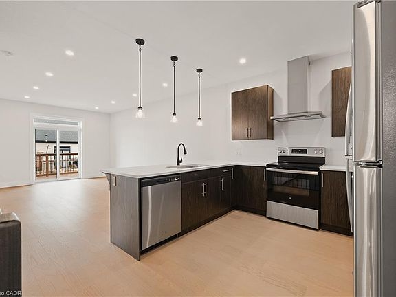 Welcome to 12 Washington St, Unit 201—a bright and inviting end-unit bungalow townhouse offering comfort, convenience, and modern living in the heart of Norwich. The stylish kitchen features quartz countertops, a sleek hood range, stainless steel appliances, and ample cabinet space. The open-concept layout allows the main living and dining areas to flow together seamlessly, enhanced by 9-foot ceilings and pot lights that create an airy and welcoming atmosphere. The primary bedroom offers both comfort and functionality with two closets and direct access to the spacious three-piece bathroom. The laundry room is conveniently located on the main floor, providing everyday practicality. A second bedroom on this level is perfect for family, guests, or a home office. The finished basement expands your living space with a large rec room ideal for relaxing, entertaining, or creating a cozy movie night setup. A third bedroom and a second full bathroom make the lower level a great space for guests or extended family, while still offering flexibility for your personal needs. Step outside to your private back deck, complete with a privacy wall—perfect for morning coffee, evening unwinding, or hosting a small gathering. The attached one-car garage adds convenience and storage. Situated in a friendly neighbourhood close to shops, schools, parks, and everyday amenities, this home blends comfort and low-maintenance living with a welcoming community feel. Unit 201 is the perfect opportunity for those seeking a well-designed home with functional space across both levels.