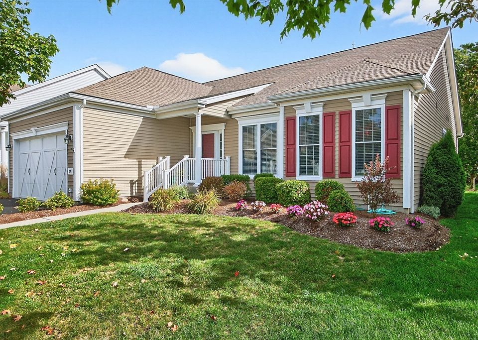 Welcome to 12 Weathervane, Great Island at The Pinehills (55+ Community) a beautifully maintained Adler-style single-level home nestled in a highly desirable neighborhood, Built in 2013, this charming home offers 2,056 sq. ft. of thoughtfully designed living space featuring 2 spacious bedrooms, 2 full bathrooms, home office and a two-car garage with ample space for vehicles and additional storage. Inside, enjoy an open-concept layout ideal for both relaxing and entertaining. Step outside to beautifully landscaped surroundings and a welcoming neighborhood atmosphere. As a Great Island resident, you'll have access to the Overlook Clubhouse, complete with an indoor pool, pickleball and bocce courts, fitness facilities, and a full calendar of social activities. Beyond your door, The Pinehills community boasts over 10 miles of scenic walking trails, the serene Great Island Pond, and the bustling Village Green.