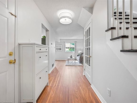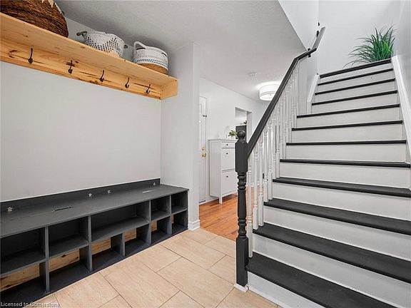 Picture yourself residing in this beautiful home in Upper Stoney Creek East Mountain where you have an abundance of amenities in walking distance such as groceries, shopping, banks, and restaurants, as well as the privacy of a townhouse complex, situated on a private road to avoid traffic. This end-unit town home will give you the look and feel that you are HOME! Drive up to the single-car driveway, with a single garage to see the welcoming front entrance with perennial-filled gardens; or pull in the back for an additional parking, to enter the private fenced patio, patio door overlooking beautiful green space. The MAGIC happens when you are inside. The home boasts a 3+1 bedrooms, with the primary suite having a full walk-in closet, 3 bathrooms, one which you will the envy of the town with its upgrades. The front hall has a custom-built in open coat and shoe wardrobe that stores your belongings in style. The kitchen has been upgraded with stunning white with subtle brown veining quartz counter, beautiful subway tile, double sink, an arching kitchen faucet with a pull-down head to make preparing your meals a pleasure. The oversized pantry is a must have for all your small appliances and food. As you walk through the house, you will see details such as accent walls, amazing lighting, a full finished basement with plenty of space for additional family members to have their privacy , their own bedroom and bathroom and laundry facilities, Central Air, Gas Heating, New Roof 2018, spacious deck, and gazebo for entertaining, freshly painted home, and more with the bonus of no work outside as the $221.50 maintenance fees covers it all. "There is nothing like staying at home for real comfort" so book a viewing today and make this beautiful place YOUR HOME!