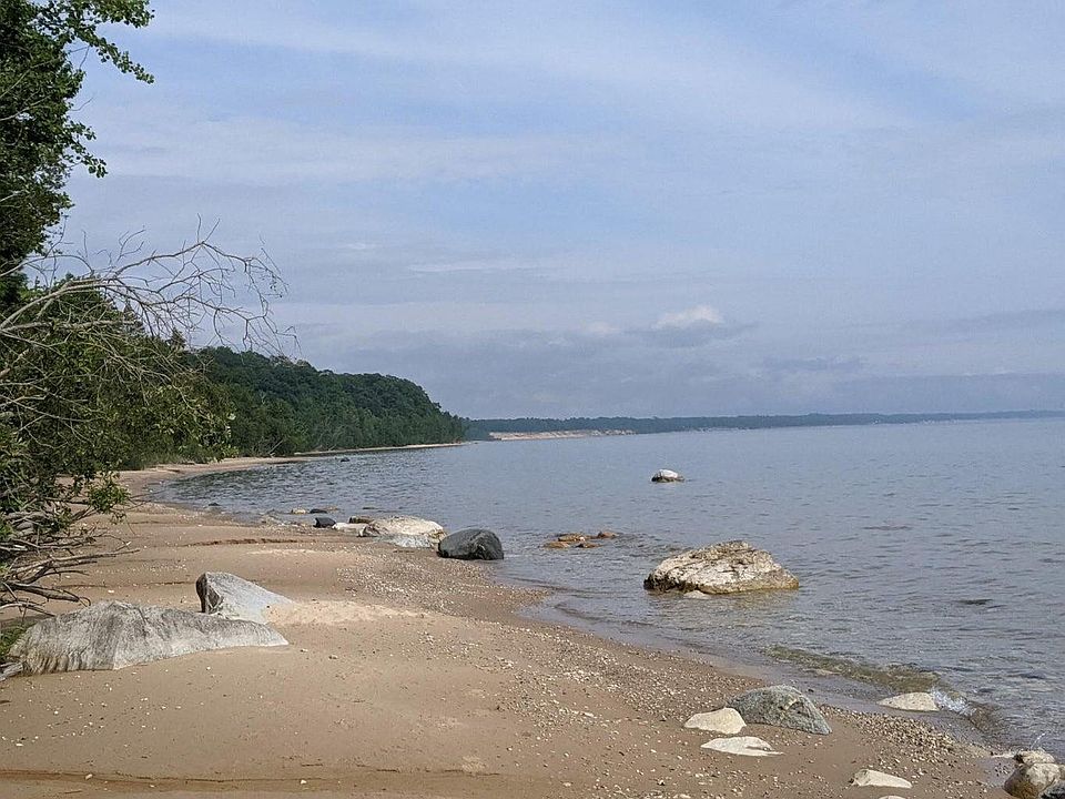 Michigan waterfront on Wildwood West. This lot offers a nice building site and great views of the crystal blue waters of Lake Michigan. You own to the high-water edge on the beach below. This lot is different from most as there is a bluff at the road that you can build a driveway through and the property slopes to the water where you would find a nice residential buildable homesite. 17 minutes west of the Mackinac Bridge just off W US-2. Walk to Little Brevort Lake (State of Michigan owned), great hiking trails, fishing and a no-motor lake, perfect for kayaks and nature with a public campground on the north side. Wildwood lots are adjacent to the little Swedish community of Brevort with Gustafsons gas/fish/jerky store, restaurant, church all close by.