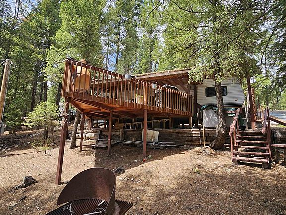 Escape to the mountains and relax in the cool pines! Enjoy this cozy trailer which is being offered turnkey. Very large deck for entertaining and cookouts with the family. 2 bedrooms, each with a bathroom, and two slide-outs for ample living area. This property has been well maintained and is awaiting your presence. Can't beat the views from this property. Schedule a showing today!