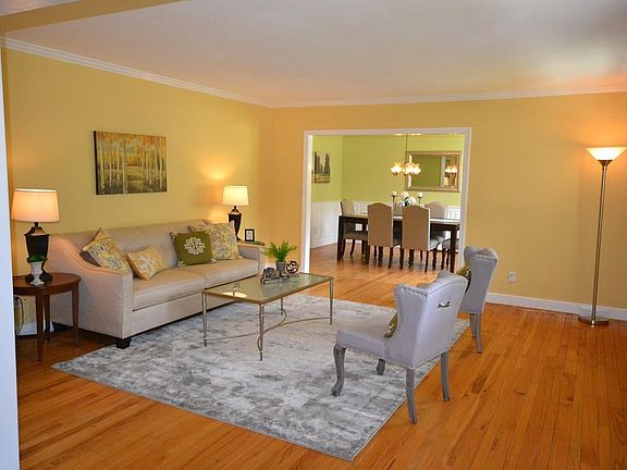 Cape with a contemporized flare.This 8 room, 4 bedroom, 3 ½ bath home features a large first floor bedroom with full bath, and walk in closet. This bedroom is perfect for visiting guests or relatives, offering both comfort and privacy. On the first floor there is a formal living room, dining room, fireplace family room, and large eat-in kitchen. The laundry room is also on the first floor. The second floor bedroom area has 2 full bath, including a master bedroom bath. The master bedroom also has a huge walk-in closet. The garage is attached and has an entrance to the house's mud room. No need to get wet in the rain, or slip on the snow. There is a full, unfinished basement for abundant storage space. The outside is spectacular! There is a screened in porch, and deck overlooking a large, level, professionally maintained yard perfect for mini-soccer. All this is set in picturesque New England neighborhood, ideal for learning how to ride a bicycle. For room sizes see attached floor plan.