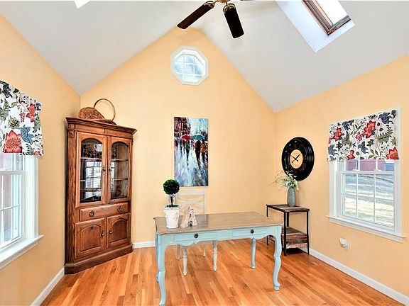 Well maintained Cape, with flexible floorplan, in desirable neighborhood near the center of Auburn! Two good sized bedrooms on main level with full bath including tub and shower. Living room with fireplace off the kitchen with granite countertops and solid cabinets. Sunny dining room with wainscoting and bay window! First level office area with vaulted ceilings, skylight and propane stove. Second level includes family room area, large Master bedroom with double closets and additional bedroom with skylight. Large, upstairs bathroom oasis with soaking tub, tiled shower and skylight! Hardwoods throughout! Paved patio area and large storage shed along with manageable backyard with new retaining wall. Do not miss out!