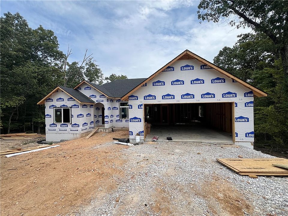 Lock in pricing now and make this gorgeous new build by Elite Thomas Homes your own with personalized finishes and upgrades! Conveniently located on Bella Vista’s east side—just off Lancashire/340 and less than a mile from the popular Back 40 Trailhead—this home combines traditional design with natural surroundings. Inside, you’ll find 3 bedrooms, 2 bathrooms, plus a dedicated office and an oversized 2-car garage. The main living area boasts 11’ ceilings, a striking stacked-stone vent-free gas fireplace, and hardwood floors that flow through the entry, living, hallway, and primary suite. The additional bedrooms and office feature plush carpeting for comfort. The luxurious primary bath includes a dual vanity and a spacious tiled shower with dual shower heads. Step outside to a private back deck overlooking wooded common property—no neighbors behind you, and both side lots currently vacant. Estimated completion: Early November 2025. Contact me today for the full list of planned features and available upgrades!