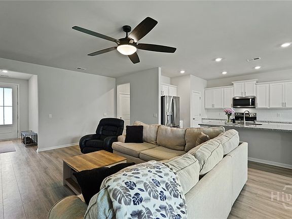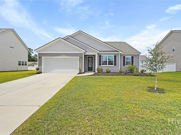 Welcome to this exceptional 4 bedroom, 2 bathroom home in the highly desirable Woodford Reserve community of Pooler. Built just a few years ago, this one-story home offers a bright open layout with seamless flow from the living room to the dining area and kitchen. The kitchen is a standout with granite countertops, stainless steel appliances, a spacious island, and a walk-in pantry. The private master suite features a walk-in closet, double vanities, a soaking tub, and a separate shower. Luxury vinyl plank flooring runs throughout the main living spaces with soft carpet in the bedrooms. The two car garage has been upgraded with beautiful epoxy flooring, perfect for storage or a clean workspace. Step outside to a covered back porch overlooking a large backyard full of potential. Conveniently located near Hunter Army Airfield, Gulfstream, and the Savannah Airport. Come see this move-in ready home today before it’s gone.