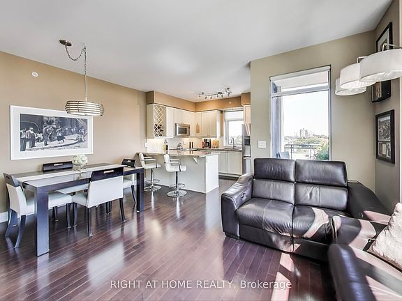 Many Builder Upgrade$ + 2 parking (rent a spot or sell it). This upgraded 2-Bed Corner suite has a Stunning Kitchen! The unit includes 1 locker, a linen/storage closet, in-suite laundry, and many upgrades. The lighting and the light switches have been upgraded to Legrand plus, high-end stainless steel appliances including a fridge with water dispenser, counter-depth stove, a spotless oven, Bosch dishwasher, and microwave. The modern kitchen is enhanced with granite countertops, a breakfast island, undermount sink with upgraded faucet, extended cabinetry with a built-in wine rack, and valence lighting. Additional features include a TV bracket, custom zebra blinds in every room... all included