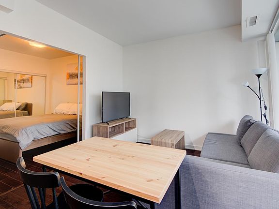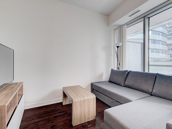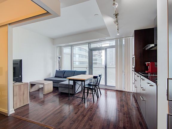 Fully Furnished Bright And Stunning 1 Bedroom Condo With Large Balcony In The Heart Of Toronto Price includes utilities + internet Fridge, Upscale Kitchen Cooking Top, Built-In Stove, Built-In Microwave, Dishwasher, Stacked Washer And Dryer. All Electric Light Fixtures. View & Direct Access To Under Ground Pathway. Located Next To Maple Leaf Sq, Air Canada Centre, Connects To Union Station, Go Trains, Financial District, Theatre, Rogers Centre, Cn Tower, Fine Dining, Lakefront, Super Market. 9 Ft Ceilings In Kitchen And Bedroom 24 Hrs. Concierge, Gym, Ballroom, Yoga, Fitness, Pool, Steam Room, And Party Room