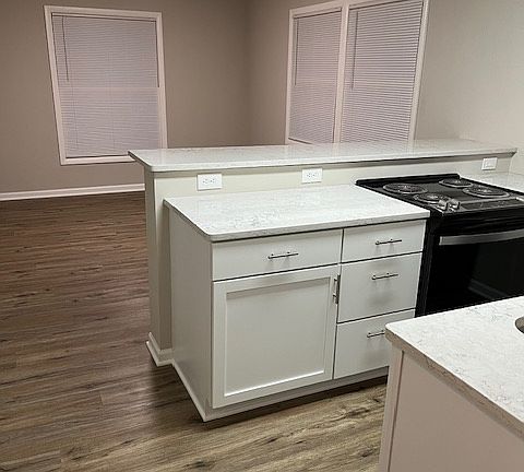 3 bedroom, 1 bath, open concept living room & kitchen with eat in bar and front porch