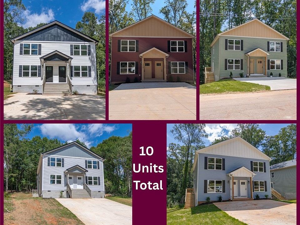 Presenting a rare chance to acquire an entire portfolio of five newly constructed duplex buildings - ten total rental units - perfectly suited for investors seeking robust cash flow and future appreciation. Situated in a prime location just minutes from downtown Anderson, these properties offer convenience to shopping, dining, employers, and major roadways - driving strong rental demand in the area. Each of the ten units showcases thoughtful, modern design with 3 bedrooms and 2.5 bathrooms, spacious open-concept floor plans, and luxury finishes throughout. Kitchens are equipped with stainless steel appliances, granite countertops, subway tile backsplash, soft-close shaker cabinets, and ample storage. Additional interior highlights include durable luxury vinyl plank flooring, matte black hardware, large laundry closets with washer/dryer hookups, and elegant bathrooms. Upstairs, residents will enjoy generous primary suites with large closets and private bathrooms, plus two additional large bedrooms and a well-appointed hall bath - providing plenty of space for families or roommates.