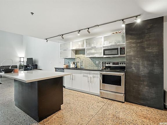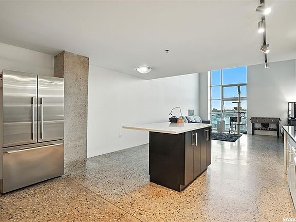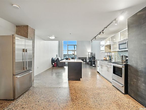 Right in the heart of Saskatoon’s downtown core, this unit in the 2nd Avenue Lofts combines modern style with everyday convenience. The main floor has a bright open layout with polished concrete floors, a sleek kitchen with quartz counters, a large island, and Bosch stainless steel appliances. The floor-to-ceiling west facing window and 18-foot ceilings with exposed beams make the space feel fresh, airy, and full of light. Upstairs, the open loft bedroom overlooks the living space and includes a full bathroom and in-suite laundry. The building itself adds to the lifestyle, pet friendly with amenity rooms and a rooftop terrace complete with barbecues and amazing city views. Whether you’re entertaining friends or winding down after work, this spot gives you a downtown lifestyle that’s hard to beat.