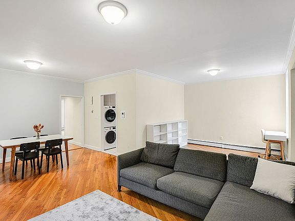 Situated on the top floor of a well-kept, investor-friendly coop, the apartment is pin-drop quiet and shares no walls with neighboring units. From the moment you enter, you’re greeted with an expansive living/dining area, ideal for entertaining or simply spreading out. A flexible bonus space easily accommodates a third bedroom or private workspace without sacrificing the open feel.