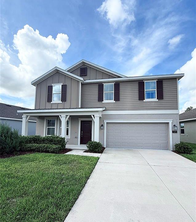This former Lennar model home in the highly desirable Astonia community has never been lived in and remains in pristine condition. Thoughtfully designed with both style and efficiency, it features premium finishes, designer upgrades, and a 5.1 kW solar energy system for lasting savings. Just off the foyer, a versatile flex room provides the ideal space for a home office, study, or playroom. The open-concept main level offers a bright and spacious family room, dining area, and a modern kitchen complete with a center island, quartz countertops, and abundant cabinetry—perfect for everyday living and entertaining. Sliding glass doors open to a covered patio and expansive backyard with no rear neighbors, offering privacy and the ideal canvas for your future outdoor retreat. Residents of Astonia enjoy resort-style amenities, including a community pool and playground. Conveniently located off Ernie Caldwell Blvd, the neighborhood is only minutes from shopping and dining at Posner Park, with easy access to I-4, world-class theme parks, outdoor recreation, and everything Central Florida has to offer.