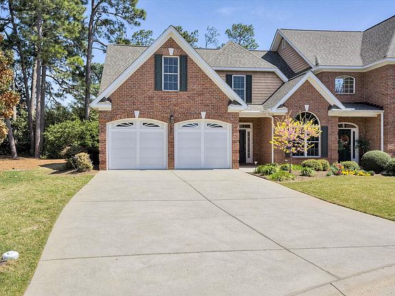 Pristine brick 3-bedroom end unit townhome, surrounded by beautiful landscaping in Houndslake Village. Foyer opens to stylish study/den. Living room with vaulted ceiling and fireplace opens to a sunny patio overlooking a large back yard. Kitchen features pantry, custom cabinetry, granite countertops, writing desk with window and sunny dining area. Main level primary suite opens to private bath with dual sinks, bathtub and shower, with walk-in closet. First floor laundry room is complete with washer and dryer. Plantation shutters in living room, dining room and primary bedroom. Upper level offers two bedrooms, full bath and large other room. Double car garage is attached. Community is bordered by attractive brick border wall for added privacy. Great location with easy walking to shops, grocery store, post office and more, and minutes from downtown Aiken.