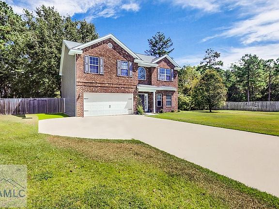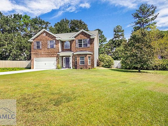 Check out this GORGEOUS 3124 SqFt home nestled into a culdesac in the Briarcrest Subdivision, situated on a beautiful 1.96 Acre lot! Only 20 minutes from Fort Stewart! Seller offering a $3000 Painting Allowance!!!! 2.37 APR Assumable VA Loan!!!! Equipped with a Foyer entry way boasting high ceilings. A bonus room that could be used as an office, play room, formal living room, or whatever your heart desires! GORGEOUS Wood-look tile flooring lines the whole bottom story, perfect for durability and a luxe look and feel! Gas-Log fireplace in your main living room that will be perfect for setting the ambience for relaxing and entertaining! Crown moulding detailing throughout all of the downstairs living areas! Your formal dining room is beautifully detailed with coffered ceilings, and wainscoting. Kitchen is equipped with granite countertops, tons of cabinet storage, and matching stainless steel appliances. A Half bath is located conveniently in the middle of the downstairs living areas. Owner suite is located on the top floor, with lots of natural lighting, beautiful Bamboo plank flooring, and a spacious bathroom equipped with a soaking tub, separate shower, double vanities, and to top it all off, two walk-in closets! Additionally, you will find THREE more bedrooms upstairs. An additional full bathroom sits in the upstairs landing area. The backyard offers beautiful mature trees, a privacy fence, a Lime Tree, an Orange Tree, a detached building for storage, and even a chicken coop! The owners have an underground fence installed for their dogs, but new collars can be bought for your animals, if you would like to continue to use it! ROOF IS ONLY TWO YEARS OLD. A/C was replaced 4 years ago. A Water filtration system will also be staying with the home! Two car garage! This home is a MUST see! One or more photos have been enhanced.