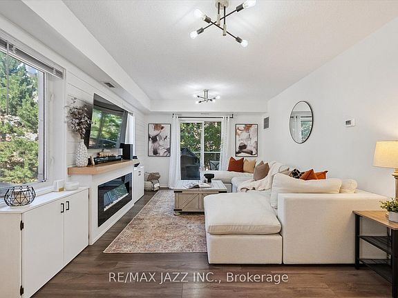 Rarely Available Corner Gem with Garage + 2 Parking! Step into one of Clarington's most coveted units. Bright, spacious, and styled for modern living. The open-concept kitchen is an entertainers dream, complete with stainless steel appliances, ceramic flooring, a breakfast bar, and a separate dining room. Sunlight pours into the expansive living room through walls of windows, where a cozy fireplace adds warmth and charm. Your private primary retreat features a chic feature wall and a massive walk-in closet. Enjoy morning coffee or evening unwinds on your east-facing balcony overlooking lush greenery offering the perfect blend of privacy and tranquility. Bonus: This unit comes with a rarely offered detached garage plus an additional surface parking space! Extras: Ensuite laundry, gym, parkette, and more. All in one of Clarington's most walkable communities. Just steps to Starbucks, dining, schools, and everyday conveniences. This one-of-a-kind corner suite truly has it all the space, style, and unbeatable value. Don't miss it!