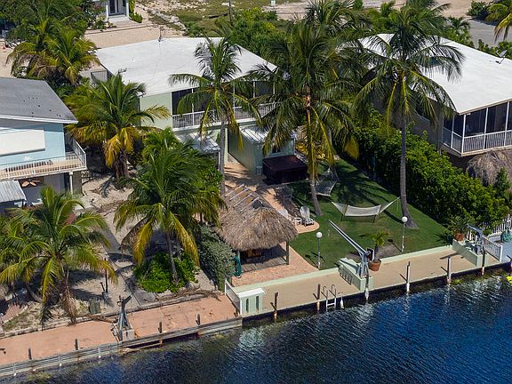 Beautiful canal front concrete home, located in the desirable neighborhood of Plantation Key Colony. This home offers a rare large backyard, featuring a beautiful tiki area, hot tub, dock, davits, and a lush green yard. Sit in the hot tub or under the tiki and enjoy an afternoon of relaxation. There are two bedrooms and two bathrooms upstairs as well as a legal pre-firm one bedroom, one bathroom downstairs. The home comes complete with hurricane shutters, granite countertops, fresh paint, and more. The community has a voluntary HOA or ($150 P/Y), with beach area, boat ramp, allowing for easy in/out, or keep your boat at your dock. Just a short ride away you will discover the beauty of the Florida Bay and the Atlantic Ocean.Founders Park, Dining, shopping are close by.
